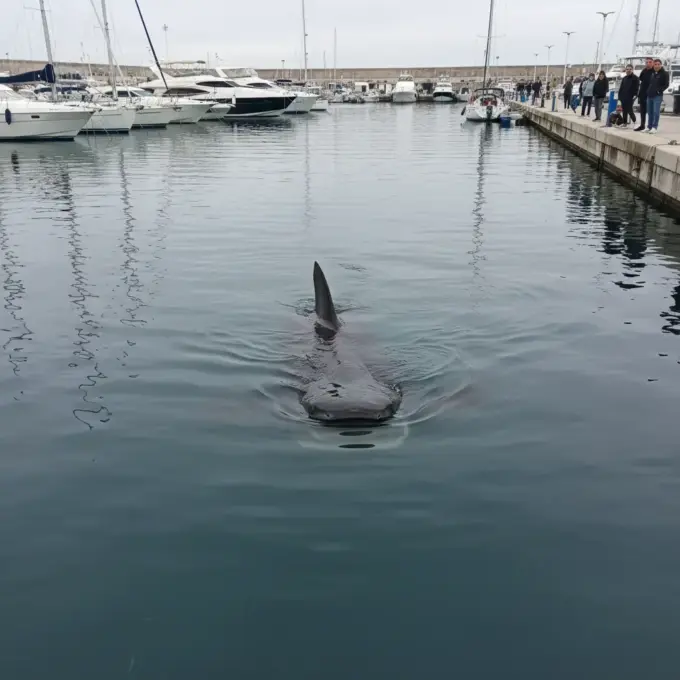 A basking shark, a protected and harmless species, was sighted in Barcelona's Port Olímpic yesterday, April 20, 2026. Experts are hailing the event...