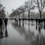 A diverse landscape of Spain showing contrasting climates, from green rainy northern regions to hot dry southern plains, with mountains and coastlines in the background, realistic style.